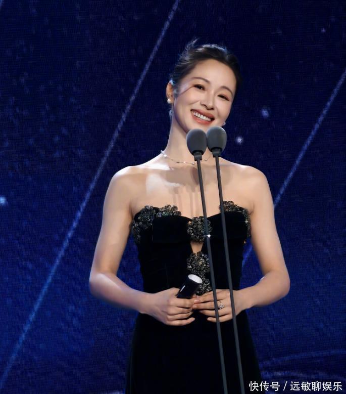 江一燕在这次活动上穿着一袭黑色的长裙礼服,制作材料看起来十分的细腻,上面还有几朵黑色水晶质感的花做装饰,看起来十分的有高级感。她的肩膀和手臂露在外面,在舞台灯光的照射下,皮肤的质感看起来非常的好,手臂上也有些许肌肉的质感。